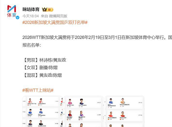 就在外界猜测国乒会如何“止血”时,王励勤用一份新加坡大满贯双打名单,给出了最出人意料的答案。